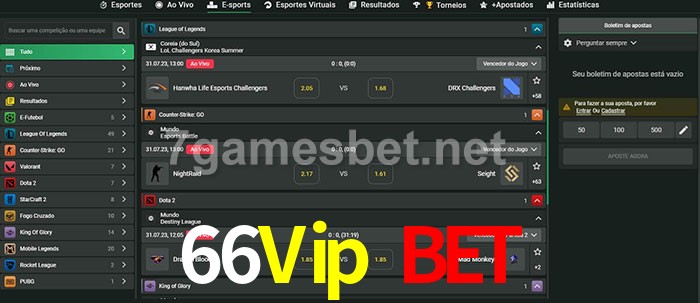 O 66Vip Bet oferece uma grande seleção de opções de apostas em e-sports com probabilidades competitivas